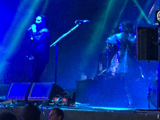 \Manson took the stage first and opened with the blistering "Deep Six" which was the lead single fro his current album "The Pale Emperor." It is one the best songs/singles that Manson has released to date and the perfect opener to the stage for the evening. Manson backed by Twiggy Ramirez and two other musicians blasted through Manson's shock rock legacy including "No Reflection," "MOBscene," and "Rock Is Dead.' The set included two of Manson's infamous 80's covers - Depeche Mode's "Personal Jesus" and Eurythmics "Sweet Dreams" enhanced by Manson's theatrical trademark of performing the song on stilts. Manson did he best to engage the packed venue even jumping down into audience during (what was thought to be the finale) "The Beautiful People." Bur Manson came back once again and closed the show "Coma White." It was a peculiar ending but the track actually resonated with the audience which seemed rather timid about rocking out. Nonetheless, Manson did not disappoint.